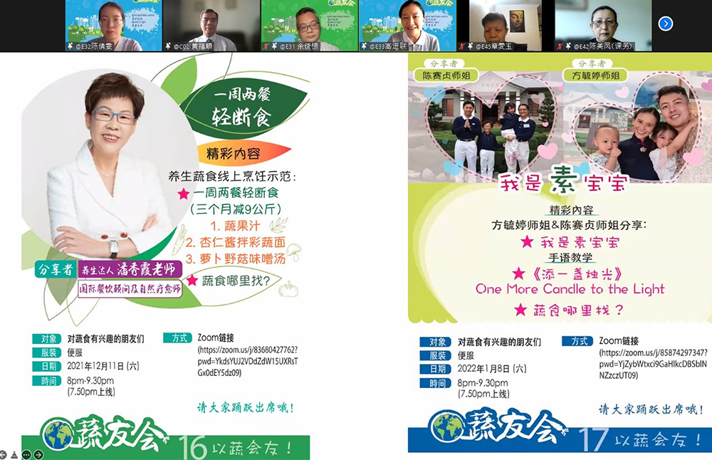 东四副互爱组长陈美凤分享,蔬友会团队在农历初一、十五到熟食中心素食摊位前,向公众推素,也邀约他们参与“蔬食小厨房”活动,准备和美味蔬食。后来疫情升级,熟食中心推素、蔬食小厨房等线下活动统统暂停,但蔬友会没有停下推素脚步,转到线上示范素食教学,同时应节庆推出更健康的好料理。