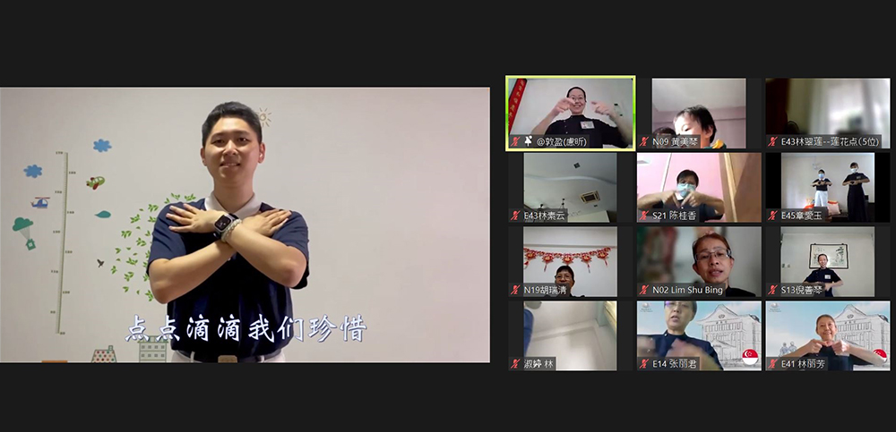 志工连线上课,在午休时跟着短片一起舒展身体,下半天一样精神奕奕。(荧幕截屏/ 冯桂琼)
